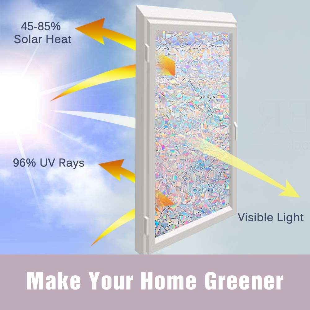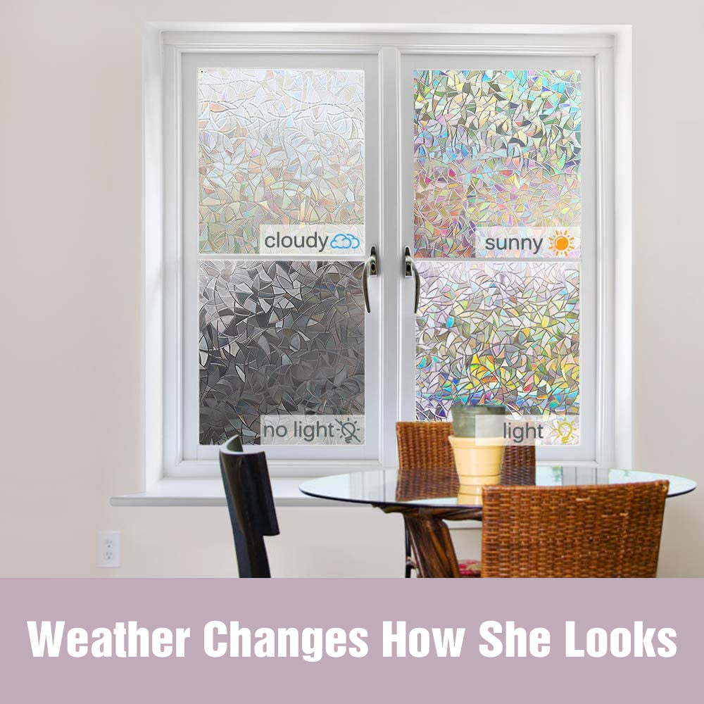 With special irregular patterns, this 3D window film creates rainbow visual effect when sunlight shines through after installation and brings unique decoration on your windows, a cost-effective alternative to heavy expensive curtains or blinds